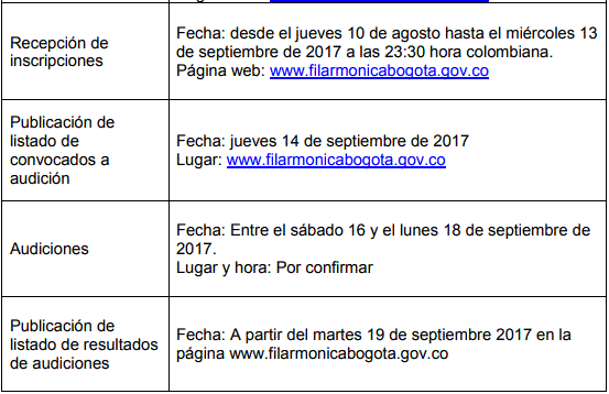 Se convoca a jóvenes entre los 18 y 26 años para la conformación de la Orquesta Filarmónica Juvenil, la Orquesta Filarmónica Juvenil de Cámara, Banda Filarmónica Juvenil o el Banco de músicos adicionales y/o elegibles de las orquestas juveniles.Orquesta Filarmónica Juvenil