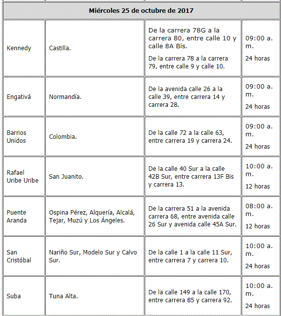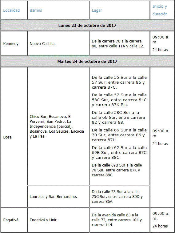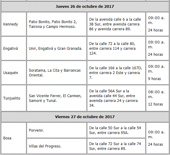Tenga en cuenta que esta semana se harán trabajos de mantenimiento y rehabilitación de redes, instalación de tuberías en obras viales y nuevas viviendas, por lo cual algunos barrios de Bogotá tendrán cortes de agua.