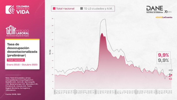 La tasa de desempleo nacional del trimestre móvil agosto – octubre 2018 fue 9,2%, para