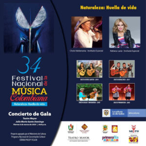 De nuevo el Teatro Mayor Julio Mario Santo Domingo de Bogotá será el escenario del Concierto de Gala “Naturaleza Huella de Vida”, que se realizará el próximo 6 de marzo a partir de las 7:00 p.m., mediante el cual se hará el lanzamiento oficial del XXXIV Festival Nacional de la Música Colombiana, donde se cumplirá una vez más la cita anual los verdaderos amantes de la música de nuestro país.