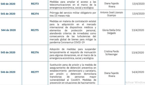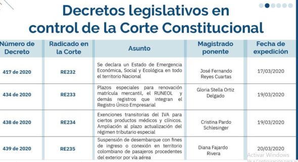 Corte Constitucional avanza en la revisión de 46 decretos de Emergencia por pandemia del Covid-19