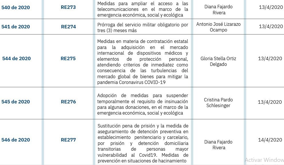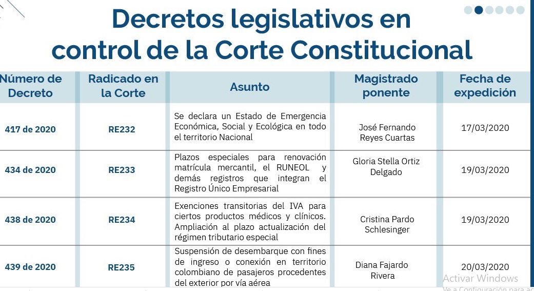 Corte Constitucional avanza en la revisión de 46 decretos de Emergencia por pandemia del Covid-19