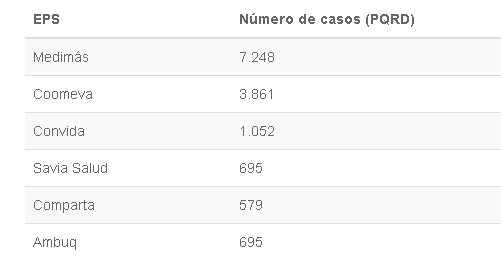 Las EPS Medimás y Coomeva concentran el 79% de las quejas que deben ser atendidas con inmediatez.