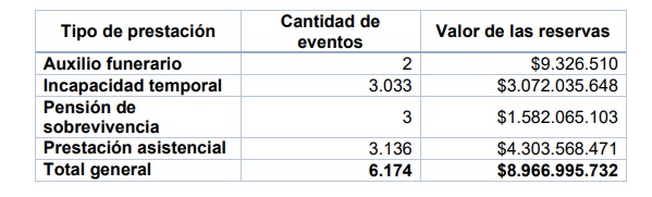 Destaca que la prestación asistencial es la que corresponde a la atención en salud de los trabajadores, la incapacidad temporal es el subsidio económico que reemplaza al salario mientras el trabajador recupera su salud. Por su parte, el Sistema General de Riesgos Laborales también ofrece, en caso de fallecimiento del trabajador, un auxilio funerario de hasta 10 SMMLV.