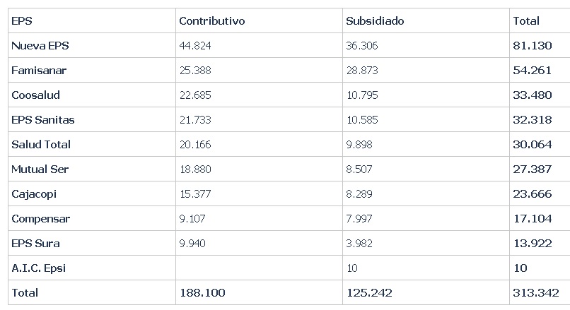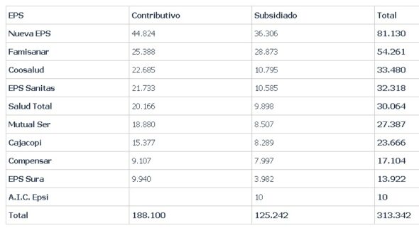 Los 313.342 afiliados de Medimás EPS, tanto del régimen contributivo como subsidiado, se asignaron a 10 EPS en los territorios antes mencionados.