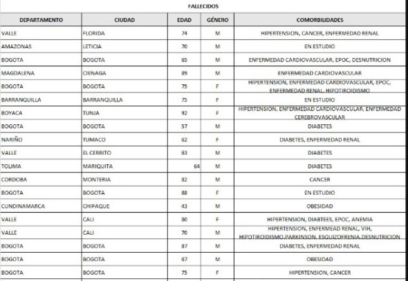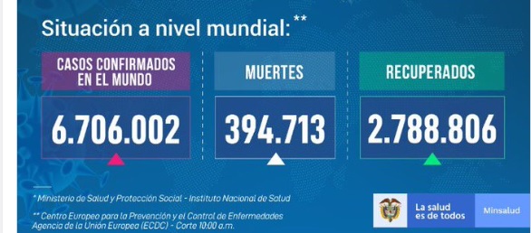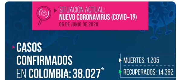 Así las cosas, la cifra total de infectados en el territorio colombiano llegó a 38 mil 027 y la de muertos a 1.205.