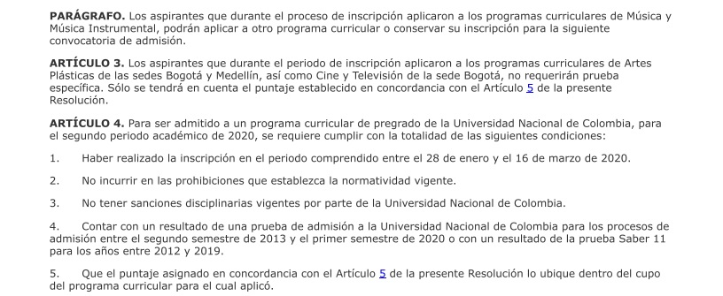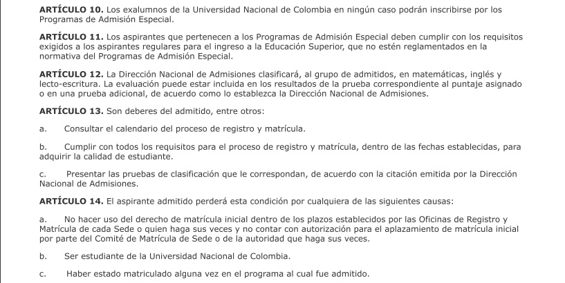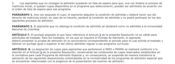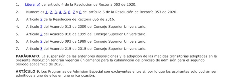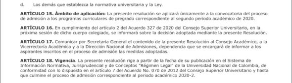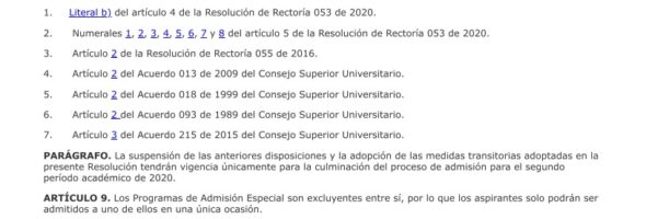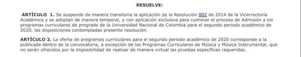 Los siguientes son los términos de la parte resolutiva de las decisiones adoptadas por las directivas de la Universidad Nacional: