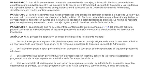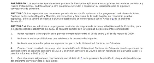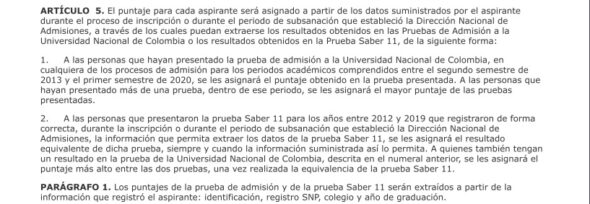 La vicerrectoría explicó que con el fin de garantizar un proceso objetivo y equitativo, se tomaron los resultados en las pruebas anteriores de admisión a la Univeridad Nacional de Colombia y los resultados en las pruebas Saber 11 con que contaban los aspirantes inscritos.