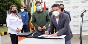 El Gobernador de Cundinamarca, Nicolás García, firmó con el alcalde de Funza, Daniel Bernal, el convenio por $6.850 millones, que posibilitará la construcción de la primera fase del colector sanitario Funza-Siberia, una obra que mejorará las condiciones de saneamiento de las aguas residuales del sector adyacente a este corredor vial y garantizará la conexión al servicio de alcantarillado del municipio a la Escuela Penitenciaria Nacional Enrique Low Murtra.