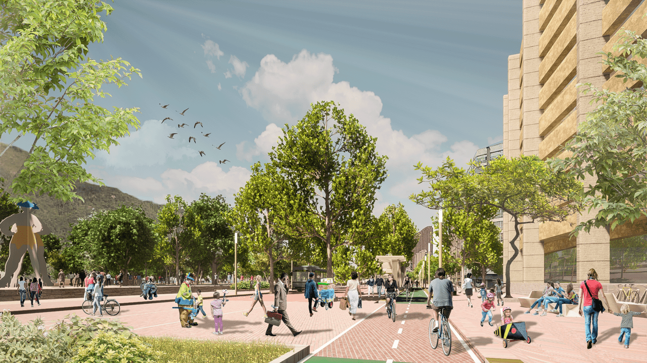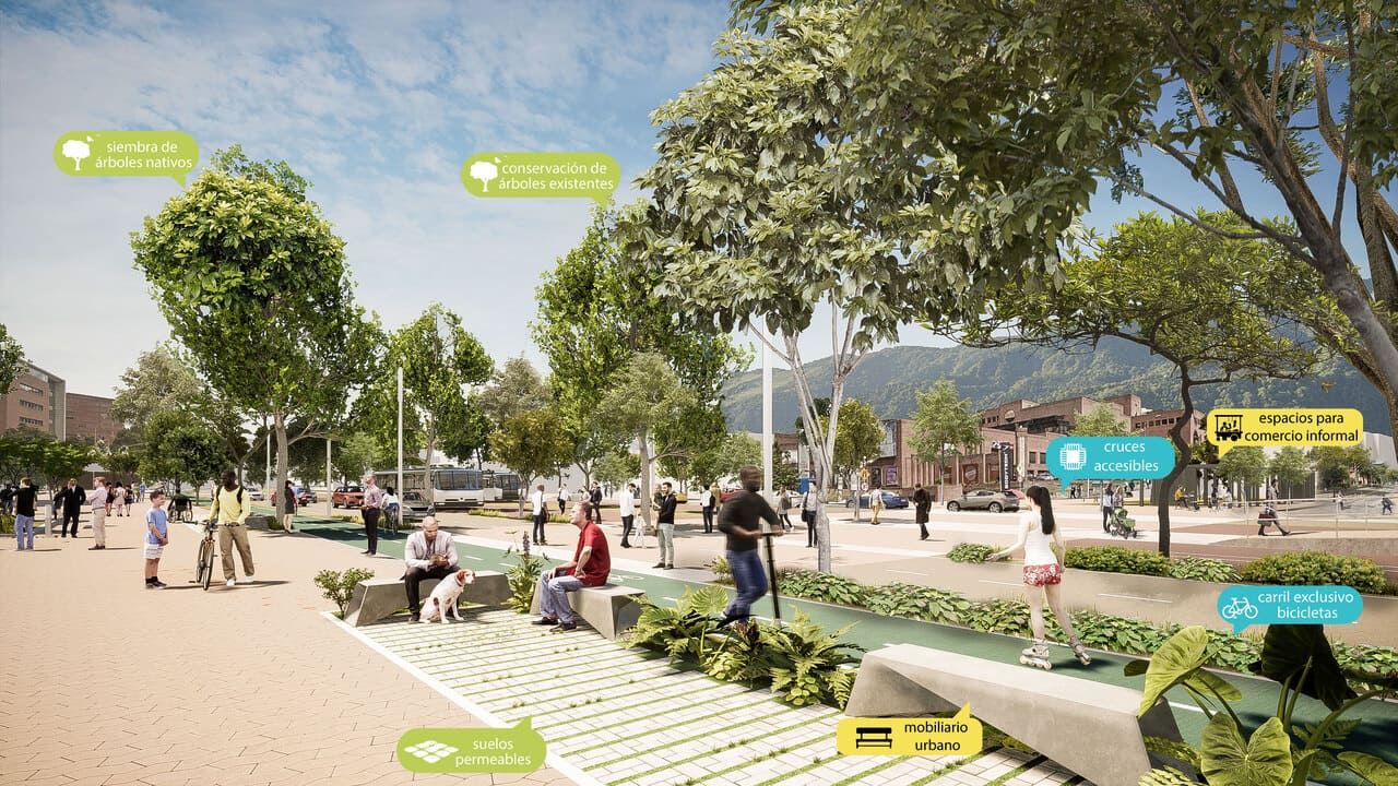 La Administración Distrital, con el apoyo de Gehl Architects y el Banco Interamericano de Desarrollo, incorporó en la alternativa presentada los criterios de movilidad sostenible, sentido de lugar y conexión ambiental. De acuerdo con el análisis realizado, el diseño conceptual que se propone da a los peatones el 50% del espacio, no sólo con andenes amplios, sino con 16 nuevas plazas y alamedas a lo largo del corredor, que cumplen con las normativas de andenes, espacio público y accesibilidad universal, y serán además lugares para disfrutar la estadía en la séptima y no sólo de pasar por allí.