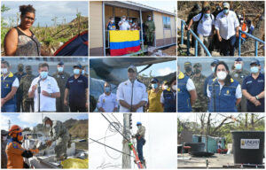 En materia de agua y saneamiento básico el Presidente informó que se tienen las plantas desalinizadoras y potabilizadoras activas, las cuales llevan conexión a las viviendas que están en pie y garantizan el suministro de este recurso natural tan importante a todas las familias isleñas. A la par señaló que “se ha recupera el 70% de conectividad, esperamos completarlo en las próximas semanas”.