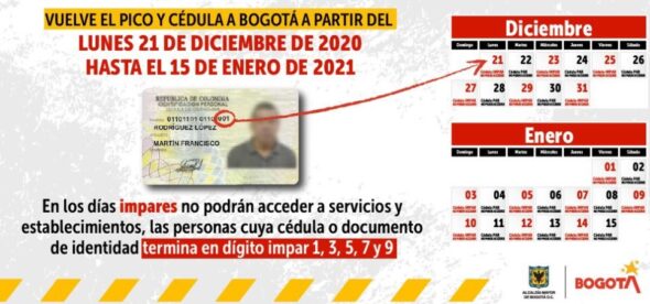 Así funciona día a día el «pico y cédula» en Bogotá a partir de este lunes y hasta el 15 de enero de 2021