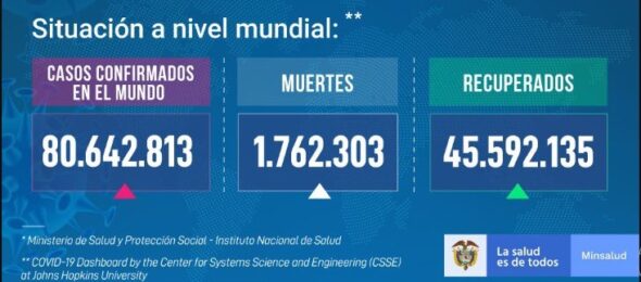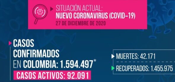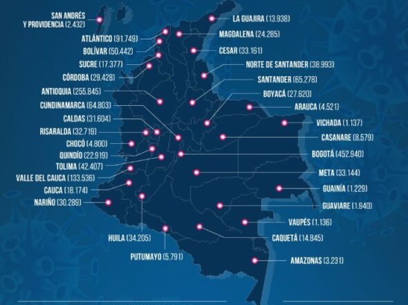 –Con 9 mil 594 nuevos casos confirmados este domingo, Colombia superó el millón 500 mil contagios de Covid-19. Además con 228 muertos registrados en este mismo día, pasó de los 42 mil fallecimientos.