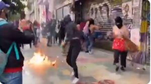 Un grupo de jovenes encapuchadas y ocultando su identidad con los tapabocas, atacaron establecimientos comerciales, buses del sistema Transmilenio con martillos y pintaron grafitis, hecho que fue condenado por la alcaldesa Claudia López, quien advirtió que «esto no es protesta ni reivindicación ni feminismo».