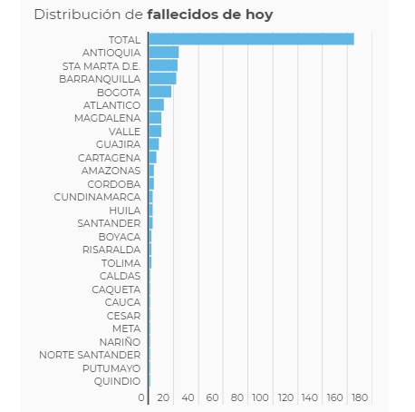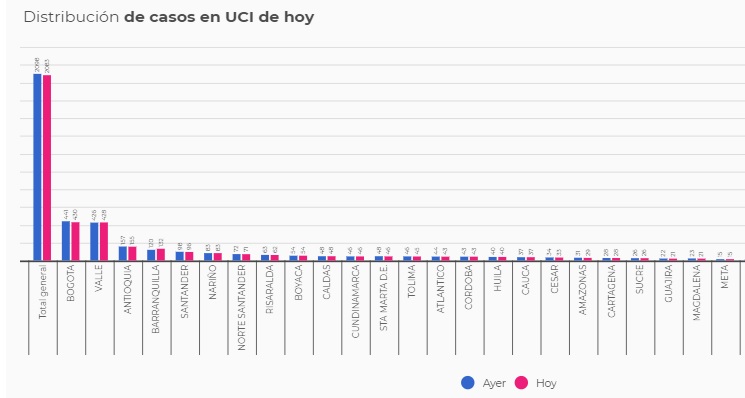 Este es el gráfico que registra la evolución del Covid-19 en el territorio colombiano: A la cabeza está Antioquia que este domingo sumó 1.935 casos nuevos; seguida de Barranquilla, con 1.355; Bogotá, con 1.046; Valle, 425 y Atlántico, 347.