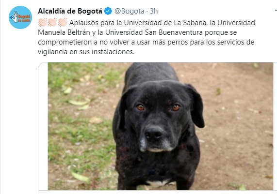 Mientras tanto, la Universidad San Buenaventura anunció que “a la fecha, dentro del servicio de vigilancia contratado, no se permite el uso de caninos(…) siendo consecuente a nuestra línea franciscana, de protección a los animales».
