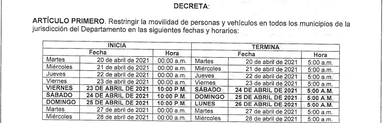 El confinamiento, que cobija a todos los 116 municipios del departamento, se prolongará hasta el próximo lunes 26 de abril y para el efecto se impondrá nuevamente el «plan candado».