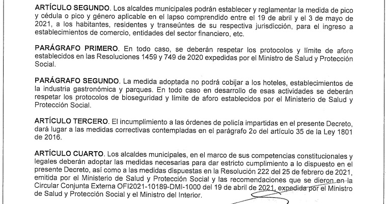 Los siguientes son apartes fundamentales del Decreto 127 con las medidas aplicadas en Cundinamarca frente al Covid-19: