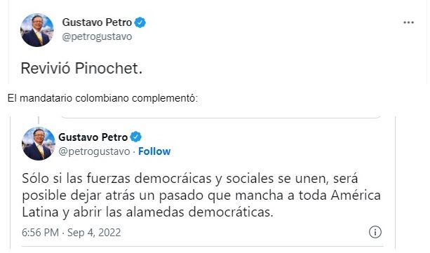 La reacción que ha causado más polémica es la del presidente de Colombia, Gustavo Petro, quien, incluso antes de ser elegido en junio, se había mostrado muy cercano a su homólogo chileno, Gabriel Boric.