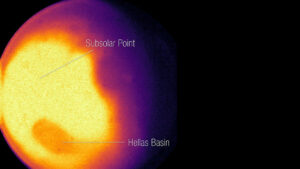 «Esto en realidad no es un efecto térmico en Hellas», explicó el investigador principal, Geronimo Villanueva del Centro de Vuelo Espacial Goddard de la NASA , quien diseñó estas observaciones de Webb. “La cuenca de Hellas tiene una altitud más baja y, por lo tanto, experimenta una presión de aire más alta. Esa presión más alta conduce a una supresión de la emisión térmica en este rango de longitud de onda particular [4.1-4.4 micrones] debido a un efecto llamado ampliación de presión. Será muy interesante separar estos efectos competitivos en estos datos”.