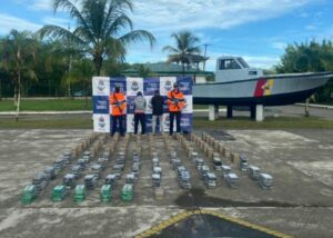 –Una operación en contra de las organizaciones narcotraficantes que delinquen en el Caribe colombiano, incautaron 422 kilogramos de clorhidrato de cocaína transportados en una embarcación de fibra de vidrio en aguas del Caribe Central, zona de frontera con Panamá.