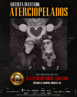 Hoy anunciamos una última sorpresa, la banda invitada para ambos conciertos. Y no podía ser nadie más que el ícono del rock colombiano, una agrupación que vivió el furor de los Guns cuando sus primeras canciones ya retumbaban en las radios de todo el país, los inigualables Aterciopelados. Andrea Echeverri y Héctor Buitrago hacen parte del ADN roquero de Bogotá y su llegada a la tarima de El Campín le dará mucho más sentido a dos noches que vivirán por siempre en la memoria sonora de la capital colombiana.