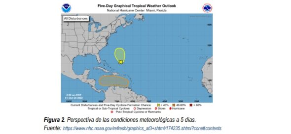Advirtió que según la información emitida por el Centro Nacional de Huracanes de los Estados Unidos (NHC, por sus siglas en inglés), se espera la formación de una zona de baja presión sobre el este del mar Caribe para este fin de semana.