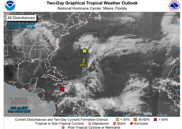 –El Centro Nacional de Huracanes de los Estados Unidos alertó en la madrugada de este lunes que una peturbación surgida en el Atlántico comience a fortalecerse en el transcurso del día para convertirse en ciclón tropical Quince Aviso 3. Mientras tanto, el IDEAM advirtió que el fenómeno causará fuertes lluvias no solo en el Caribe, sino en gran parte del territorio colombiano, incluida la región Andina y la Amazonia.
