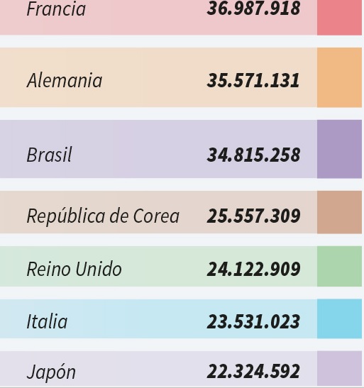 –Las siguientes son las últimas actualizaciones sobre los casos confirmados de COVID-19 en los países más afectados del mundo, según el recuento del Centro de Ciencia e Ingeniería de Sistemas de la Universidad Johns Hopkins: