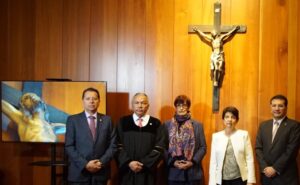 La presidenta de la Corte Constitucional, magistrada Cristina Pardo Schlesinger, señaló que este crucifijo fue testigo “del acto más execrable contra la justicia”, pero también de la resiliencia de la Rama Judicial y de su entereza para afrontar la adversidad.