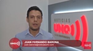 –El informativo de televisión Noticias Uno anunció la destitución del periodista Juan Fernando Barona luego de divulgarse un video en el que aparece propinando una salvaje golpiza a su compañera sentimental. El comunicador estaba cubriendo en Egipto la gira del presidente Gustavo Petro.