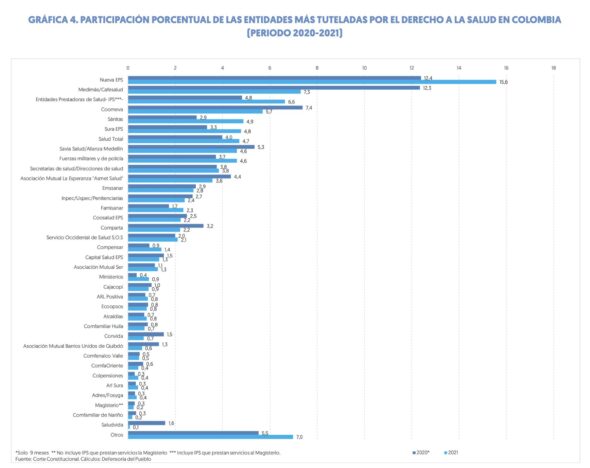 -El derecho más vulnerado en Colombia es el derecho a la salud. Según cifras de la Defensoria, solo en el año 2021 se presentaron más de 92.499 tutelas exigiendo la reivindicación de este derecho. Aquí las entidades más tuteladas