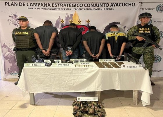 Durante el desarrollo de esta operación fueron incautados dos fusiles, una pistola, 447 cartuchos de diferentes calibres, 12 proveedores, un chaleco pixelado, equipos de comunicaciones y un vehículo.