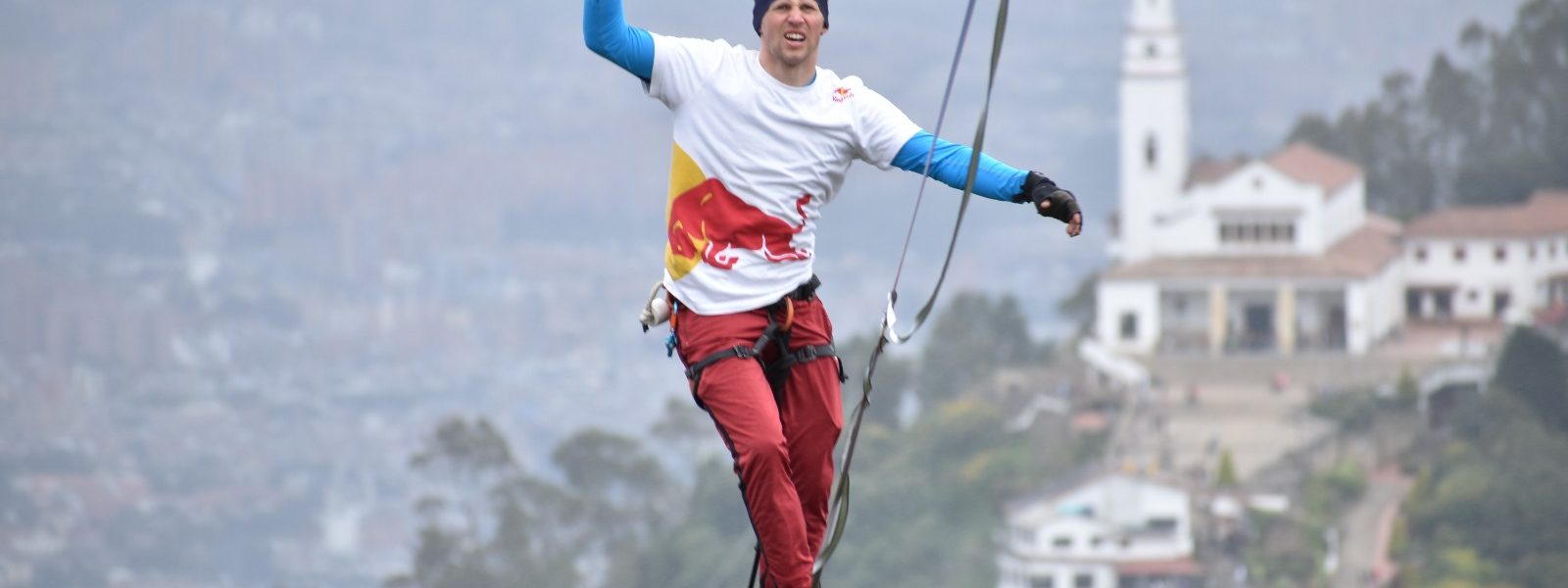 A 3.100 metros de altura, Jaan Roose, quien es tricampeón de slackline y con varios records mundiales, alcanza la meta cruzando 1.525 metros sobre un abismo a través de una cuerda floja entre Monserrate y Guadalupe logrando su record personal con una duración de dos horas y 12 minutos.