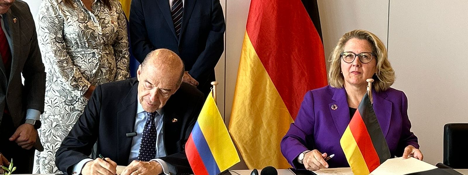 El Ministro de Relaciones Exteriores, Álvaro Leyva Durán, firmó este viernes la “Alianza por el clima y la transición energética justa”; por parte de Alemania, el documento fue suscrito por la Ministra Federal de Cooperación y Desarrollo, Svenja Schulze; el Vicecanciller y Ministro Federal de Economía y Protección Climática, Dr. Robert Habeck; la Ministra Federal de Medio Ambiente, Protección de la Naturaleza, Seguridad Nuclear y Protección del Consumidor, Steffi Lemke y la Secretaria del Estado para Europa y Clima del Ministerio Federal de Asuntos exteriores, Anna Lührmann.
