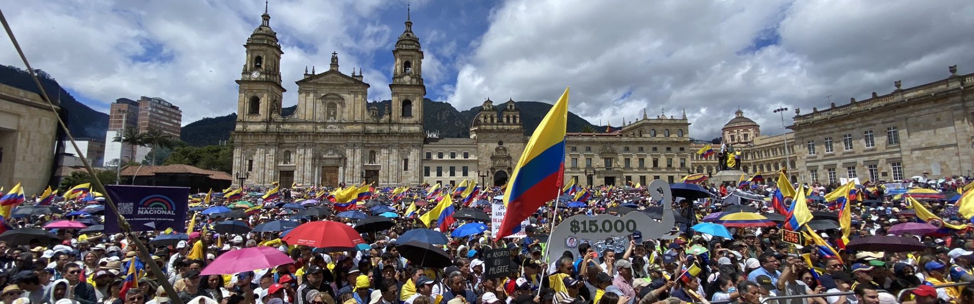 En el centro de la capital colombiana, miles de personas caminaban hacia la Plaza de Bolívar, aledaña a la sede presidencial y al Congreso donde se discuten las reformas del gobierno.