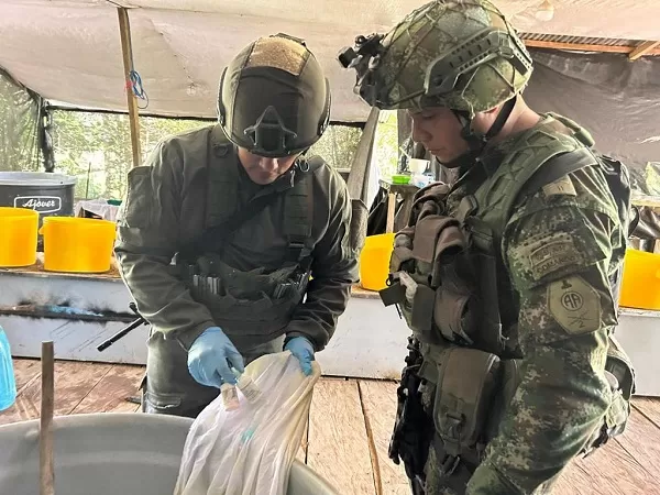 En el segundo laboratorio se ubicaron 1.552 kilogramos de clorhidrato de cocaína, 513 kilogramos de pasta base coca, 2 mil 782 galones de insumos líquidos, 1.250 kilogramos de insumos sólidos, que pertenecerían a la estructura 33 de las disidencias de las Farc.
