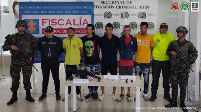 Servidores del Cuerpo Técnico de Investigación (CTI), de la Policía Nacional y del Ejército Nacional capturaron a Brainer Alexander Rangel Alarcón, alias Pitico; William Javier Suárez Beltrán, alias William; Luis Alberto Ropero, alias Tula; Víctor Antonio Cortez Guillen, alias Víctor, y José Fernando López Castillo.