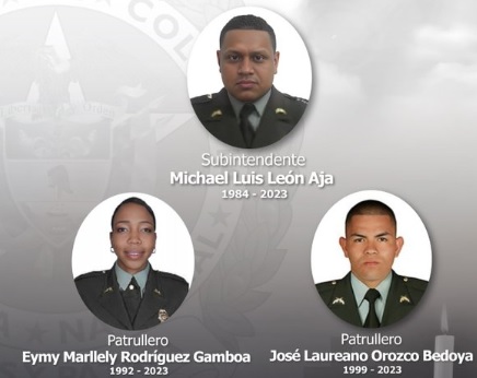 El Ministerio de Defensa y la Policía Nacional, tras condenar la acción criminal, identificaron a los tres uniformados como el subintendente Michael Luis León Aja y los patrulleros Emily Mallerly Rodríguez Gamboa y José Laureano Orozco Bedoya.