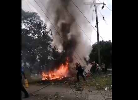 –Una avioneta de la Fuerza Aeroespacial de Colombia, se precipitó a tierra y se incendió este martes en la mañana en plena área urbana de la ciudad de Cali, calle 26 entre carreras 6 y 7.