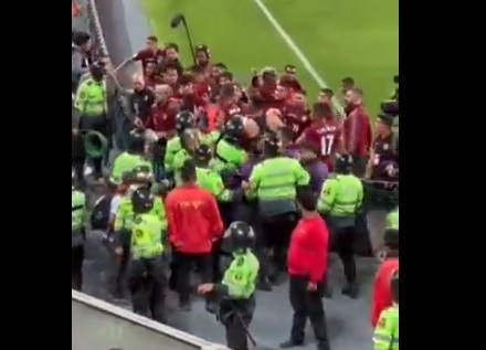 Y al final la policía empujando a los jugadores de la Vinotinto.