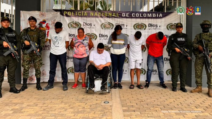 Los capturados, en vía pública de los barrios La Madrid y La Esperanza de la capital del Meta, fueron identificados como Christian Camilo Avendaño Castro, Dagoberto Bernal Parrado, Lisbeth Daniela Santana Ramos, Maryi Santana Ramos, Andy Isaac Ardila Alférez y Diego Eduardo Sánchez Valdés.