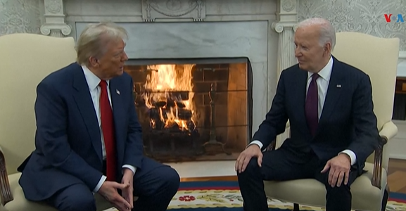 –(Captura de video-VOA). «Bienvenido de nuevo», fue el saludo del mandatario saliente Joe Biden al presidente electo -entrante -Donald Trump con un apretón de manos, al recibirlo en la Oficina Oval de la Casa Blanca este miércoles para iniciar la…