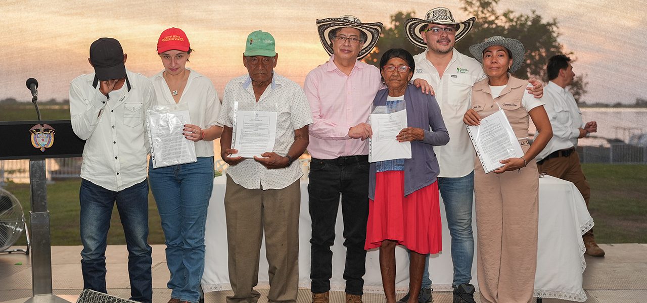 –Durante el acto de restitución de 2 mil 400 hectáreas del complejo cenagoso de Machado a 500 familias agropescadoras en Sucre, el presidente Gustavo Petro ordenó a la Fuerza Pública defender los derechos del campesinado y garantizar la protección de tierras públicas, como los playones de la región, frente a intentos de apropiación ilegal.