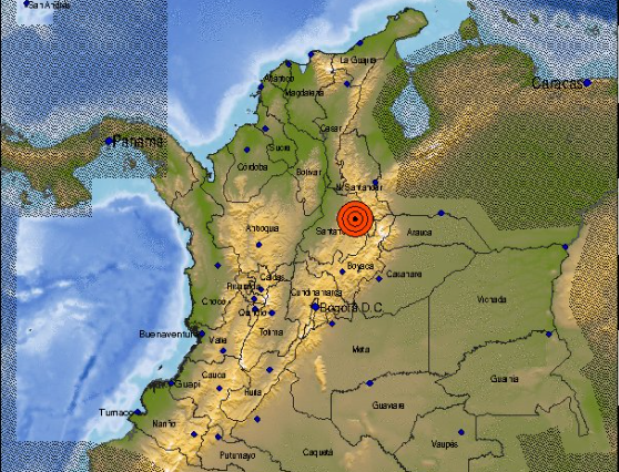 –El Servicio Geológico Colombiano confirmó una magnitud de 4.5 grados en la escala de Ricther del sismo registrado este domingo con epicentro en el municipio de Los Santos, en el departamento de Santander. El fuerte temblor se produjo a las 10 y 32 minutos de la mañana y se originó a una profundidad de 153 kilómetros, de acuerdo con el reporte del organismo.