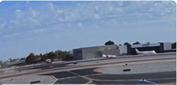 “A Learjet 35A veered off the runway after landing and crashed into a Gulfstream 200 business jet… pic.twitter.com/yuZsRQK735