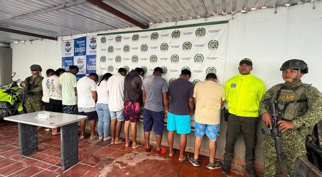 Durante el desarrollo de ocho diligencias de allanamiento y registro, realizadas por servidores del Cuerpo Técnico de Investigación (CTI) y la Policía Nacional, en Villanueva, Turbaco, Santa Rosa de Lima, Carmen de Bolívar (Bolívar) y Sincelejo (Sucre); se lograron las capturas de Teresa de Jesús Arroyo Benera, alias La Mona; Xavier Eduardo Parra Batista; Humberto Rafael Salgado Vega, alias El Mono; Ricardo Batista Beleño; Jaider Enrique Tapia Acosta; Javier Catalino Cantillo Cortina, alias Zuricato; Yuribith Escarlett Carrasquilla Simanca, alias Yuribi; Marco Antonio Polo Pombo, alias Polo; Everson Pérez Gómez; y los hermanos Gleider José y José David Tobar Parra, alias Brujo y Brujito, respectivamente.