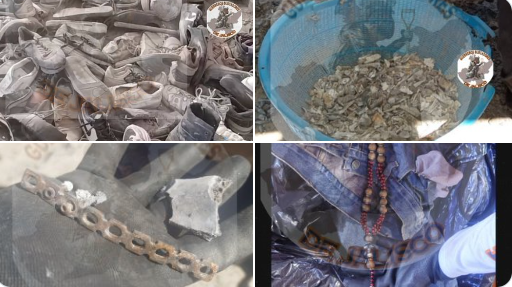 «Se localizan tres crematorios con huesos calcinados, faltan por destapar, ropa, cargadores, casquillos», agregaron al enumerar las montañas de objetos que encontraron, como zapatos y mochilas.