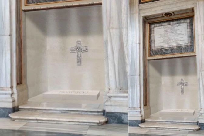 La Santa Sede ha revelado cómo será la tumba del Papa: una losa de mármol ligur con la inscripción "FRANCISCUS" y una reproducción de su cruz pectoral. La sepultura se encuentra en un nicho de la nave lateral, entre la Capilla Paulina y la Capilla Sforza, en la basílica de Santa… pic.twitter.com/lC4kuqVSZR