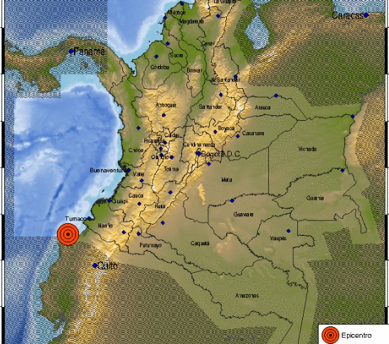 Por su parte, el Instituto Geofísico de Ecuador informó que el terremoto se produjo a 8,4 kilómetros de la ciudad de Esmeraldas, capital de la provincia del mismo nombre.